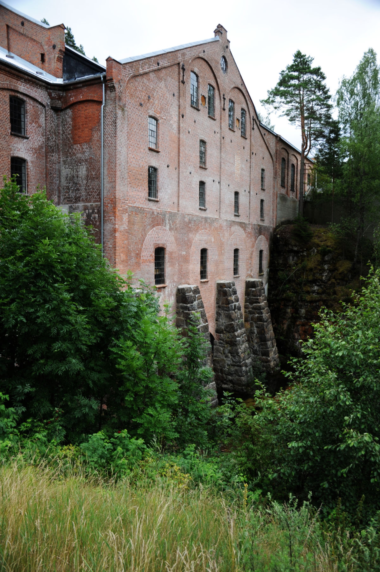 Fabrikken ble i sin tid plassert ved elva og fossen. Det åpnet for både kraftforsyning, transport av råvarer og produksjon av tremasse.